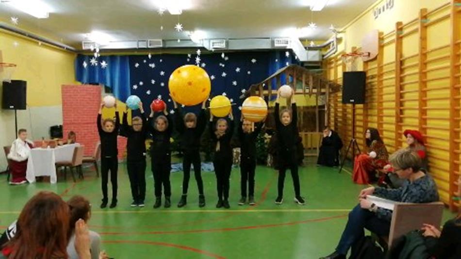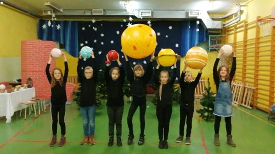 10.02.2020 witaliśmy w naszej szkole gości ze szkół partnerskich z Włoch, Portugalii i Rumunii. Na ich powitanie został przygotowany program pt „ Kopernik w Kruszwicy”. Najmłodsi członkowie koła astronomicznego, trzecioklasiści, przygotowali taniec ukazujący Układ Słoneczny Mikołaja Kopernika (Słońce i 6 planet).