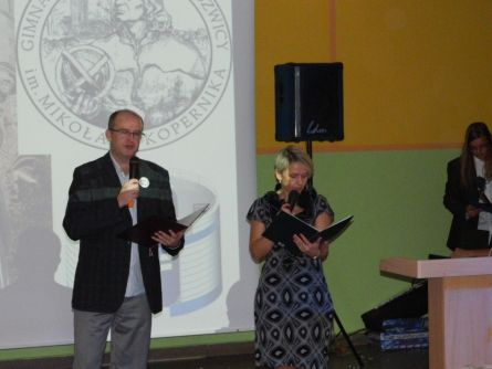 Konferencję w Kruszwicy pt. Tranzyt Wenus poprowadził dyr szkoły Tomasz Tschurl oraz lokalny koordynator Ilona Dybicz