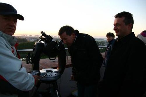 Włodarze miasta podczas obserwacji Wenus z Mysiej Wieży