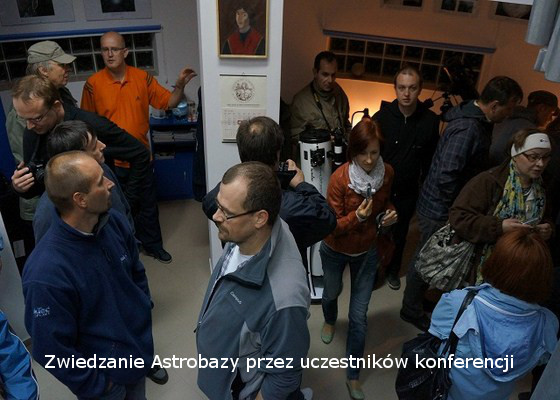 W dniach 25-26 maja 2012r. odbyła się w Kruszwicy konferencja astronomiczna pt. ”ASTROBAZY - WYKORZYSTANIE MAŁYCH TELESKOPÓW”. Po raz pierwszy w Kruszwicy na taką skalę spotkali się zarówno zawodowi astronomowie, lokalni koordynatorzy projektu ASTROBAZA, jak i popularyzatorzy astronomii. Organizatorami konferencji było Kujawsko-Pomorskie Centrum Edukacji Nauczycieli w Toruniu oraz Polskie Towarzystwo Astronomiczne. Patronat medialny objął miesięcznik Urania. Przybyłych gości powitał w imieniu organizatorów Wiesław Skórzyński- koordynator merytoryczny projektu ASTROBAZA. Następnie uroczystego otwarcia konferencji dokonał Burmistrz Kruszwicy pan Dariusz Witczak. Profesor Maciej Mikołajewski (wiceprezes PTA) witając przybyłych gości podkreślił jak wielkim ewenementem w skali kraju jest spotkanie się w jednym miejscu tylu uczonych i pasjonatów astronomii z całej Polski. Uczestnicy konferencji nie tylko wysłuchali bardzo ciekawych referatów ale też aktywnie brali udział w wielu dyskusjach, których tematem była szeroko rozumiana edukacja astronomiczna oraz popularyzacja astronomii. Piątkowe sesje poprzedziły dwa wystąpienia- referat Wiesława Skórzyńskiego dotyczący historii projektu ASTROBAZA oraz wykład inauguracyjny profesora Grzegorza Karwasza z UMK w Toruniu pt. „Jak konstruować astronomię w ASTROBAZACH?”. W piątkowych wykładach brało udział ok. pięćdziesięciu osób oraz dwudziestoosobowa grupa młodzieży skupiona w kółku astronomicznym przy Gimnazjum nr 1 im. Mikołaja Kopernika w Kruszwicy. Po zakończeniu piątkowej sesji uczestnicy konferencji mogli zwiedzić Mysią Wieżę, a następnie odbyć rejs po Jeziorze Gopło. Atrakcje te ufundował Burmistrz Kruszwicy. Po powrocie z rejsu odbyło się wspólne ognisko oraz obserwacje w kruszwickiej ASTROBAZIE, które poprowadził pan Zbigniew Rakoczy oraz lokalni koordynatorzy pani Ilona Dybicz oraz Magdalena Musiałowska. W sobotę odbyły się dwie sesje referatów, po których nastąpiło podsumowanie konferencji.
