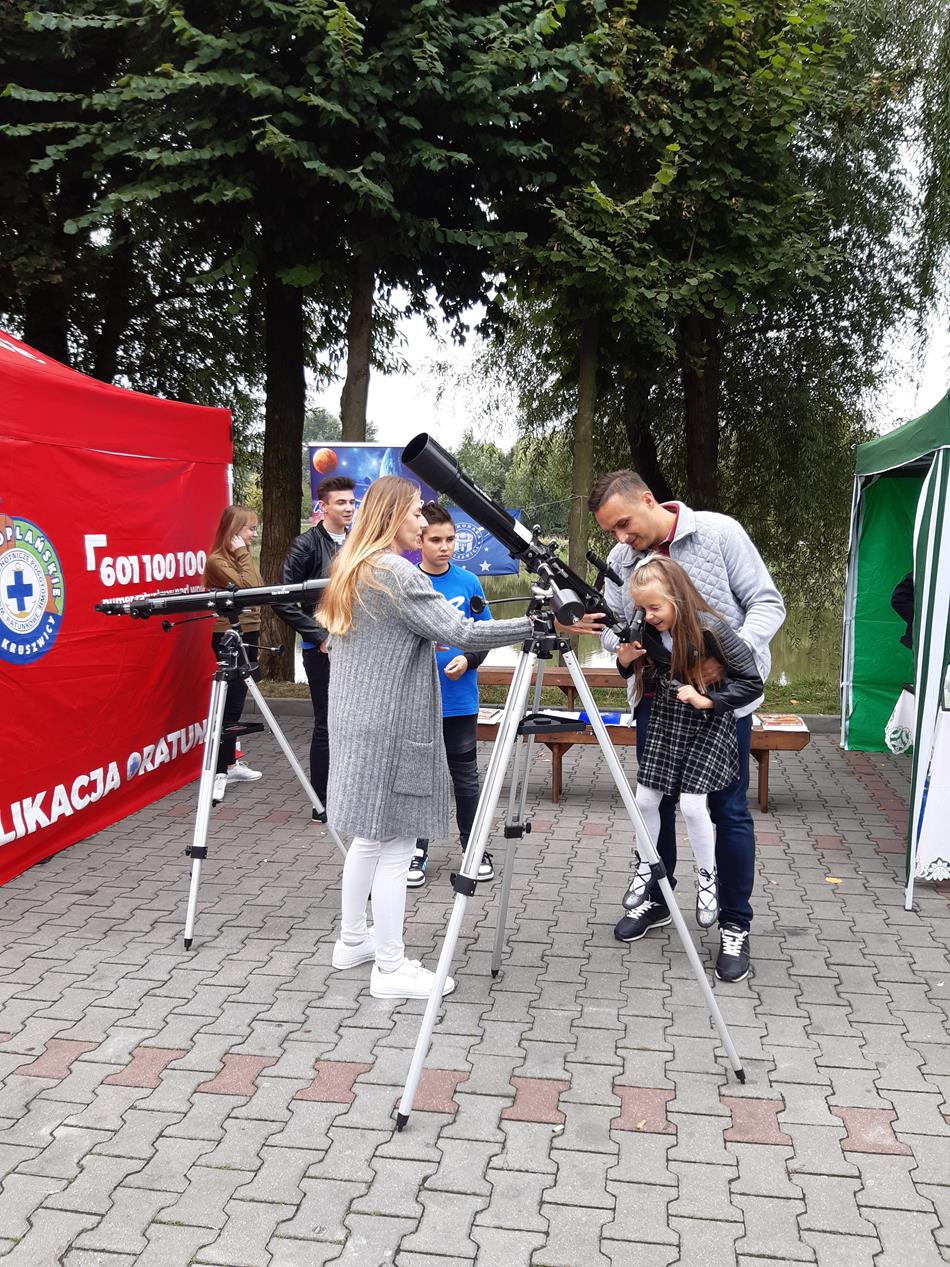 Dziś (08.09.19 r) zaproszeni przez organizatora imprezy plenerowej - Lato w Parku (NPT), uczestniczyliśmy w spotkaniu z mieszkańcami Kruszwicy i okolic. Pod Mysią Wieżą udostępniliśmy zainteresowanym teleskopy, by mogli przez nie spojrzeć. Maluchy chętnie korzystały z kolorowanek astronomicznych a starsi rozmawiali z nami na temat kosmosu. Szkoda, że pogoda nam nie sprzyjała, pochmurny dzień uniemożliwił obserwacje nieba.