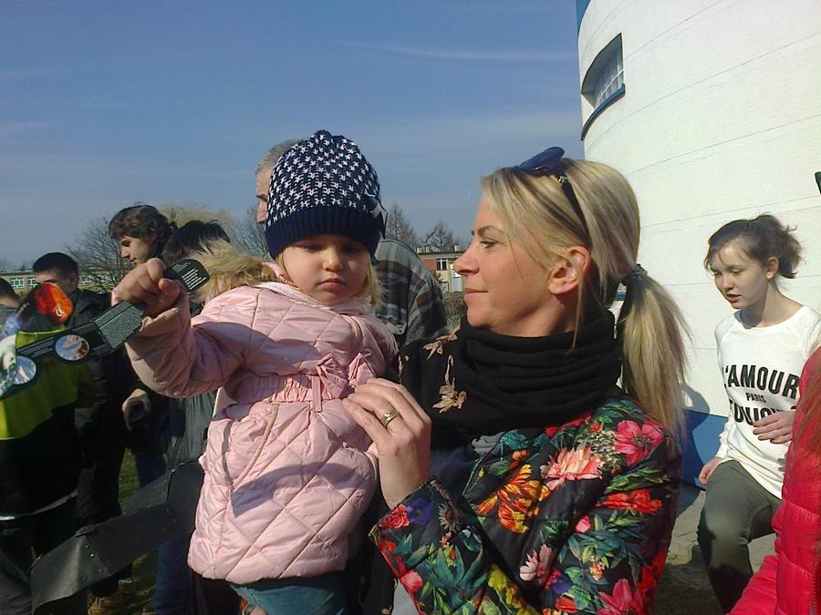 W godzinach od 10.00 do 12.00 przybyło do nas ponad 300 osób. Byli to miłośnicy astro-nomii, studenci, uczniowie i nauczyciele z Gimnazjum nr 1 i Szkoły Podstawowej nr 1 w Kruszwicy, członkowie koła astronomicznego, małe dzieci z oddziałów zerowych, kruszwi-czanie starsi i młodsi oraz osoby z innych miejscowości, które specjalnie przyjechały na tę obserwację do naszej Astrobazy. Pomocą w prowadzeniu obserwacji służyli wszystkim koor-dynatorzy Astrobazy p. Ilona Dybicz i p. Magdalena Musiałowska oraz miłośnik astronomii p. Janusz Piwecki, który udostępnił do obserwacji swój własnoręcznie wykonany teleskop MTO 1000.